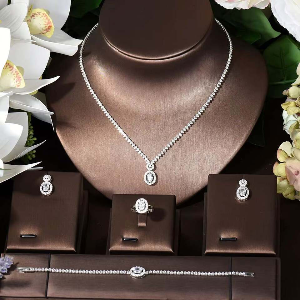 HIBRIDE, borla Simple, gota de agua, Zirconia cúbica blanca, conjunto de collar y aretes de boda para mujer, accesorios de joyería nupcial