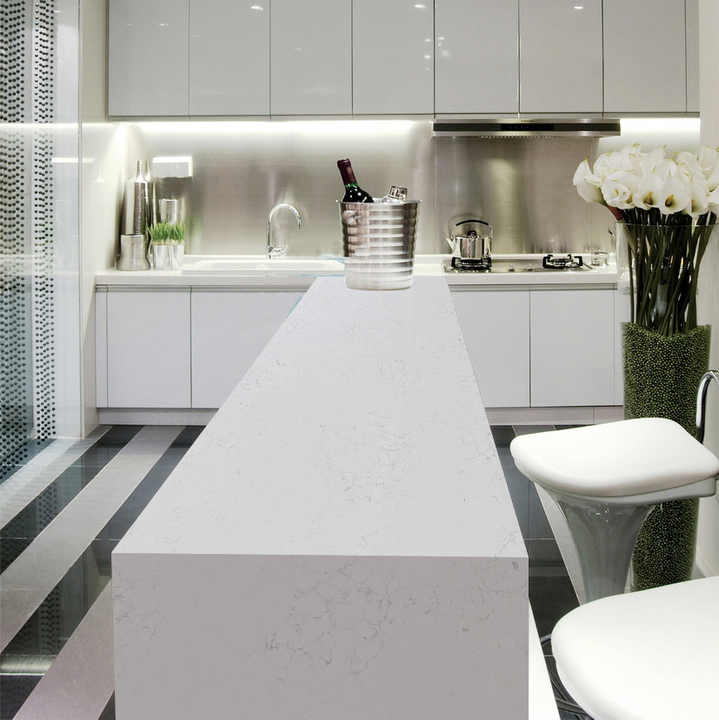 Losas de superficie de piedra de cuarzo blanco nuevo 2025, diseño moderno resistente al agua para encimeras de Hotel y tapas de tocador de baño