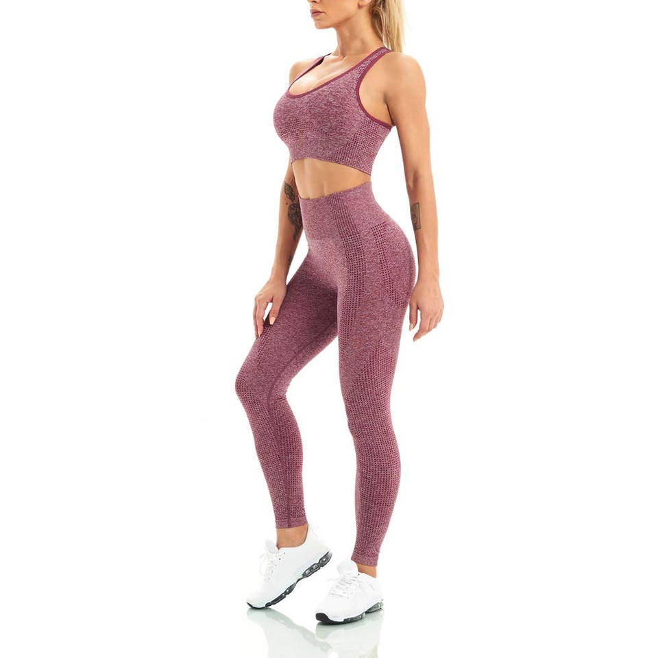 ALTA DEMANDA Sujetador deportivo sólido Leggings Conjunto de yoga para mujeres Transpirable Cintura alta Frente Logo Gimnasio Entrenamiento Conjunto de dos piezas
