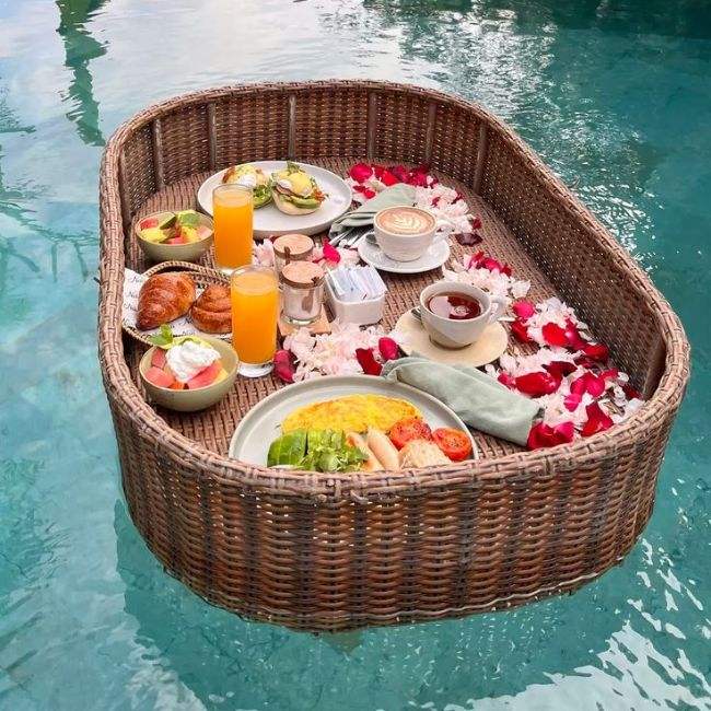 Bandeja Flotante de Ratán de Alta Calidad 2026 para Servir en Fiestas en la Piscina y Exhibición Fotográfica, Artesanía Premium, Superficie Segura