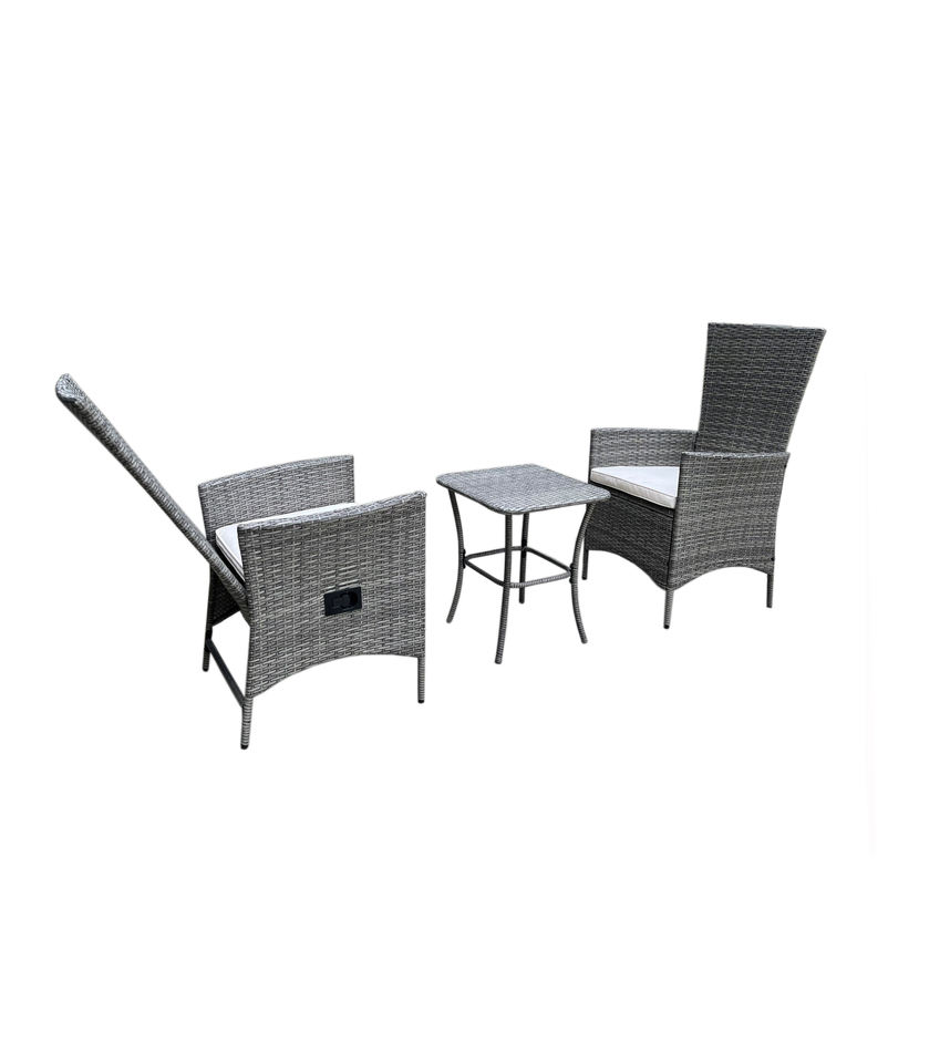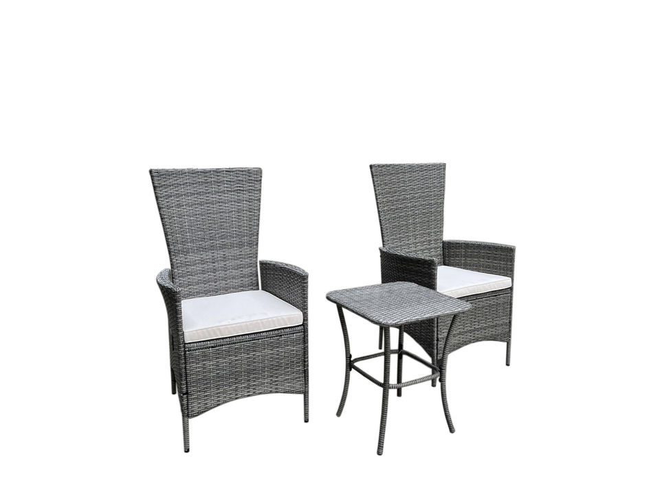 Muebles de mimbre de polietileno para jardín, silla de respaldo alto ajustable y mesa de centro, alta calidad, precio barato