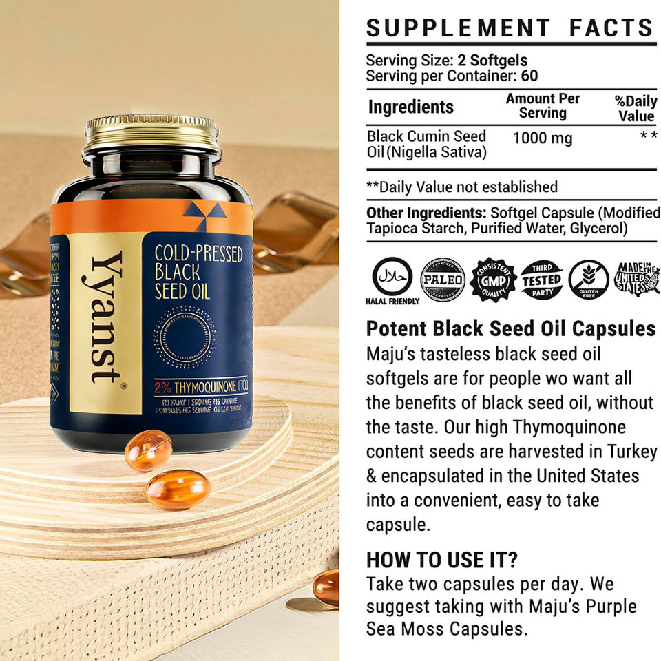 Cápsulas de Semillas Negras Prensadas en Frío de Alta Calidad, Marca Privada, Suplemento para Mejorar el Sistema Inmunológico y la Salud Digestiva y de las Articulaciones