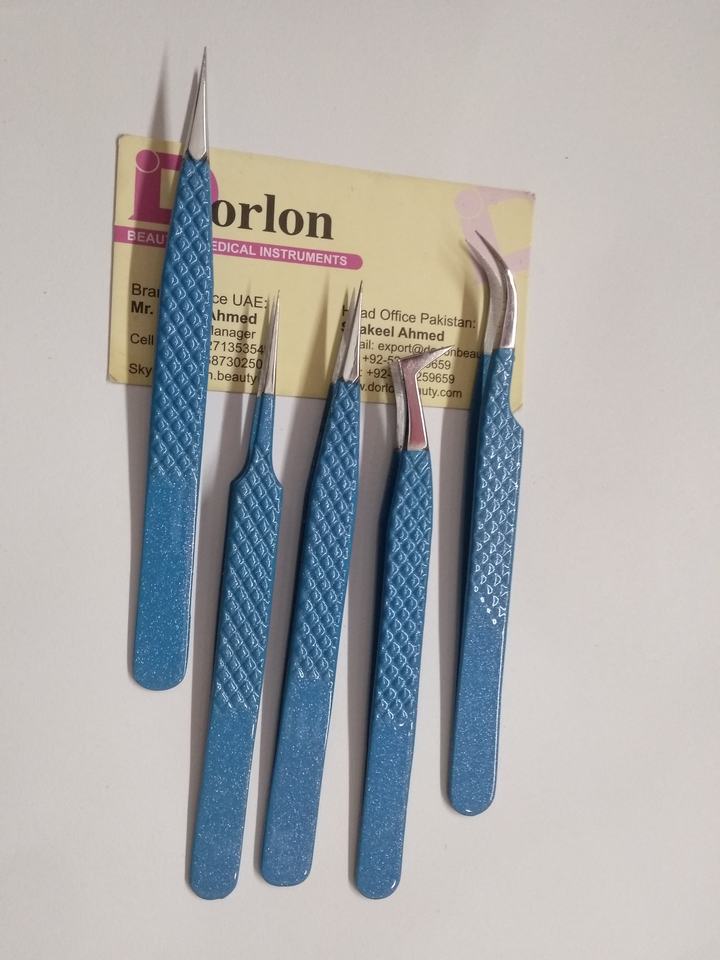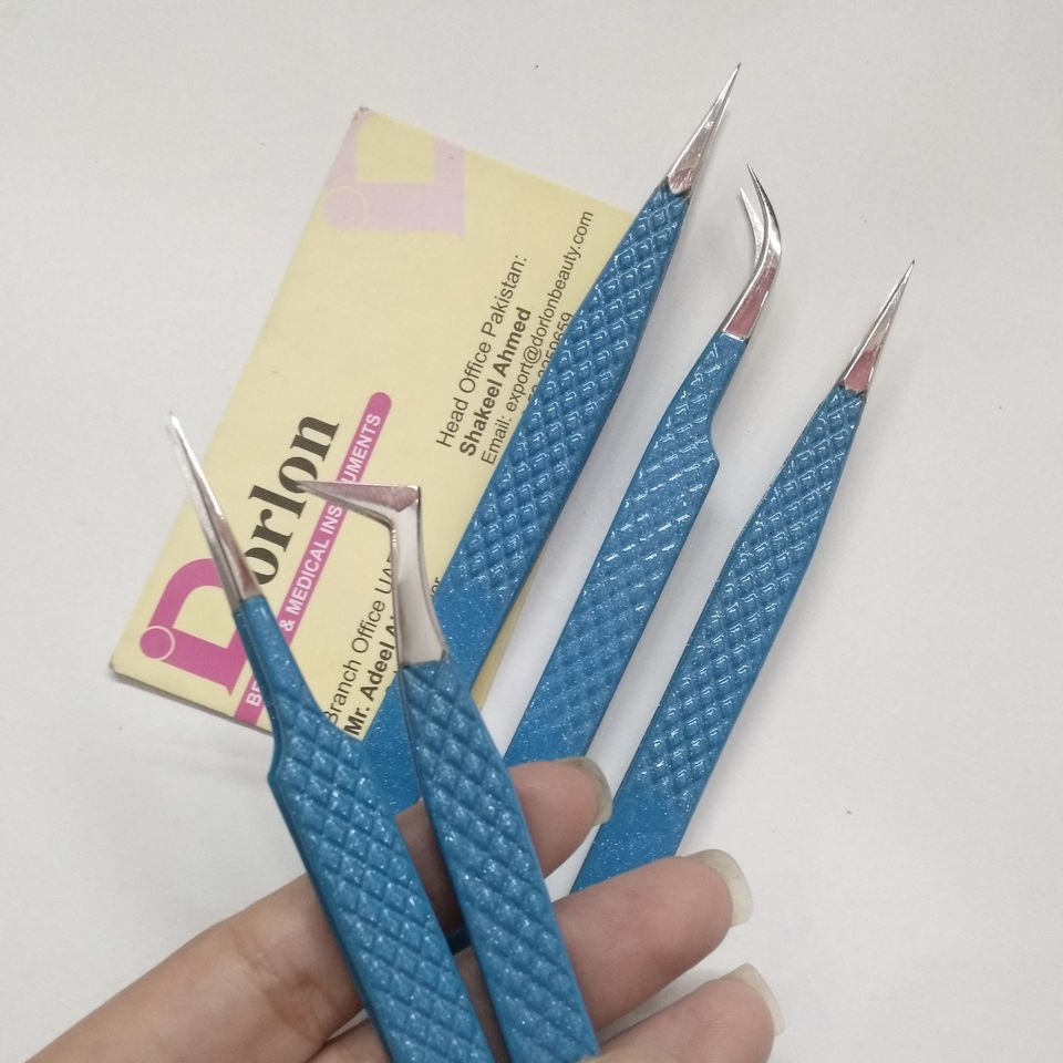 Nombre del producto:Blue Glitter Diamond Grip Pinzas de extensión de pestañas Set
