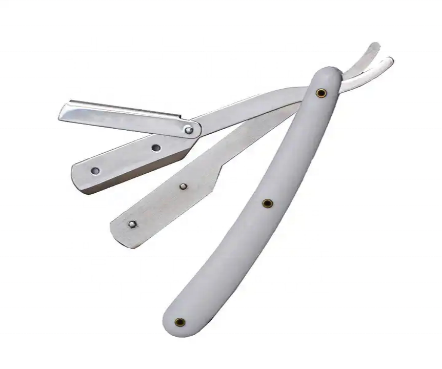 Maquinilla de afeitar de borde recto para hombres, acero inoxidable, Manual corte recto, venta al por mayor, mango de plástico, maquinilla de afeitar de peluquero de alta calidad