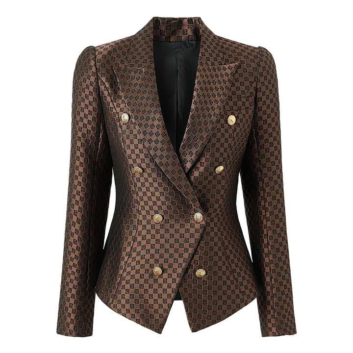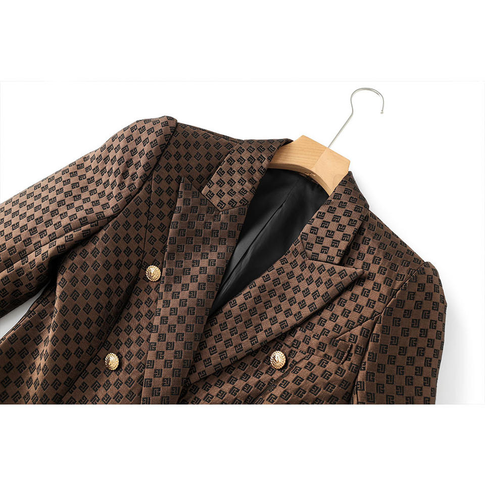 HIGH STREET Newest SS Designer Jacket Mujer Doble botonadura Slim Fitting Monogram Jacquard Blazer