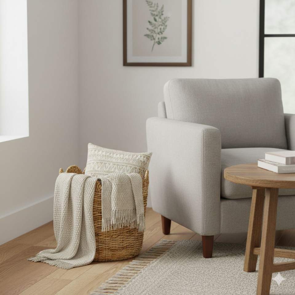 Cesta de mimbre artesanal con diseño de corteza de plátano