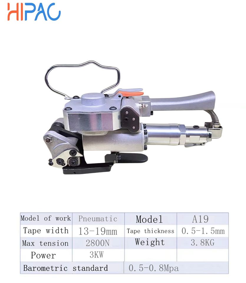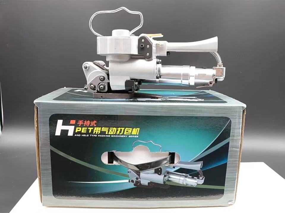 Flejadora neumática eléctrica portátil compacta HIPAC, flejadora integrada, apriete automático para alimentos, bebidas, madera