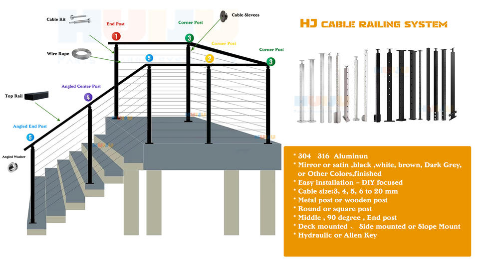 Barandilla de Metal Clásica HJ para Escaleras/Barandilla de Cable de Acero Inoxidable