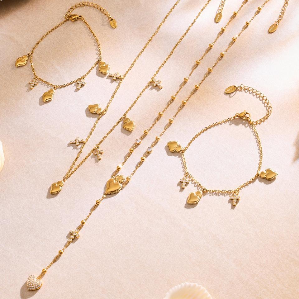 HJ Jewelry Multi Layers CZ collar largo chapado en oro Lariat Y forma enlace cadena circón piedra collar pulsera conjunto para mujer