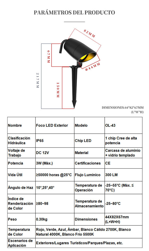 2700K (suave blanco cálido), 4100K (blanco), 5000K (luz del día)Temperatura del color(CCT)
