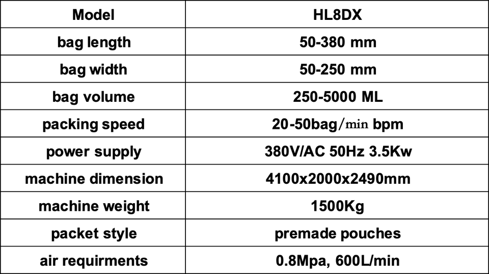 Máquina de Llenado de Bolsas Preenvasadas de Plástico HL8DX, Aséptica, Multifuncional, Totalmente Automática y de Alta Precisión para Envasado de Alimentos y Frutos Secos