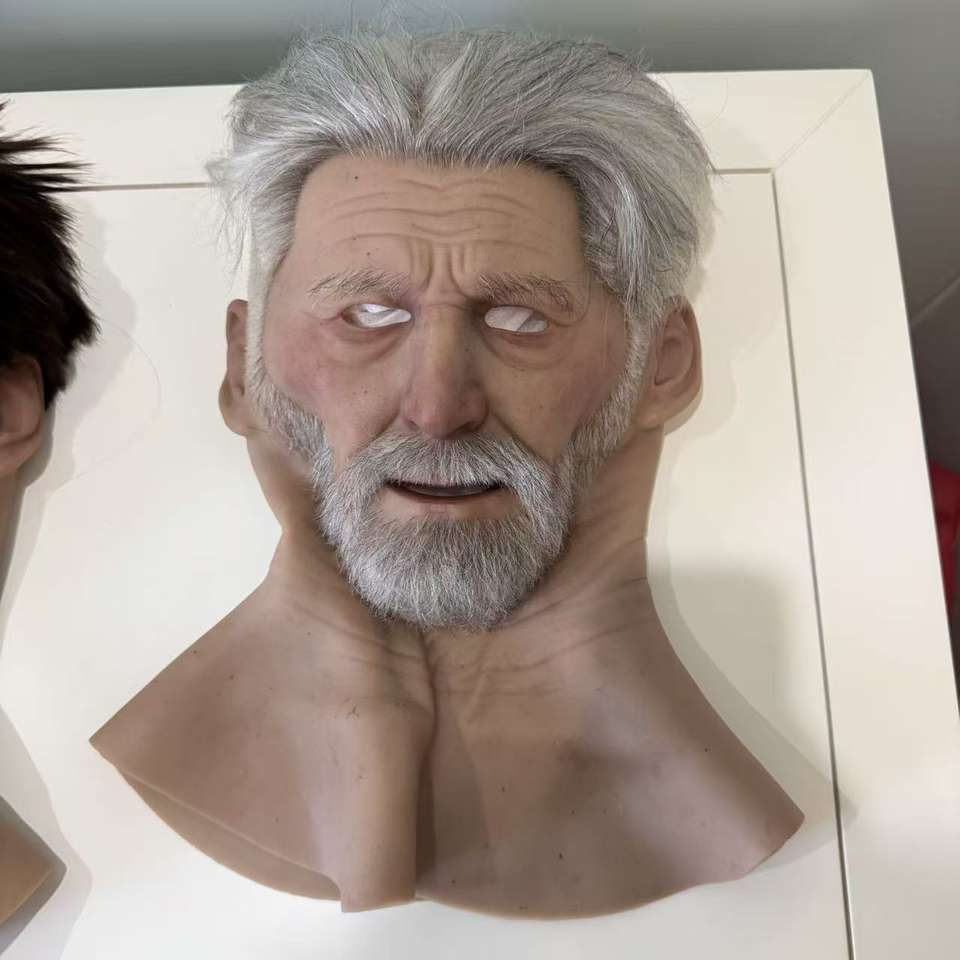 Máscara Facial de Silicona Realista de Hombre Mayor con Ojos de Cristal, Diseño Personalizado HLC ODM