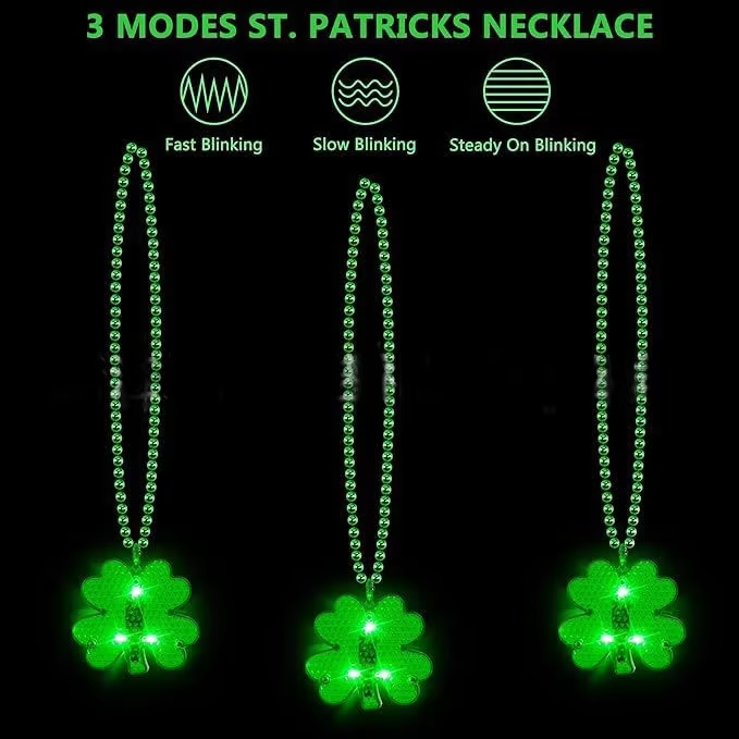 Collares de Cuentas con Trébol Verde Iluminado con LED para el Día de San Patricio de HLC, Collares Luminosos con Hoja de Trébol Irlandés para Fiestas y Eventos