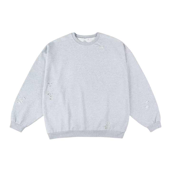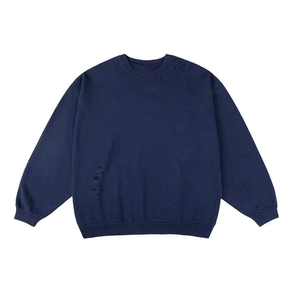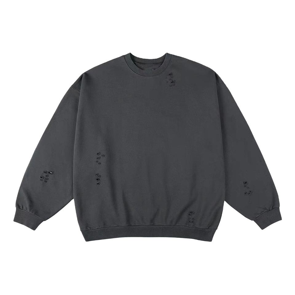 HLD24002MS personalizado lavado desgastado hombres rasgados sudaderas con capucha lavado ácido cuello redondo sudadera