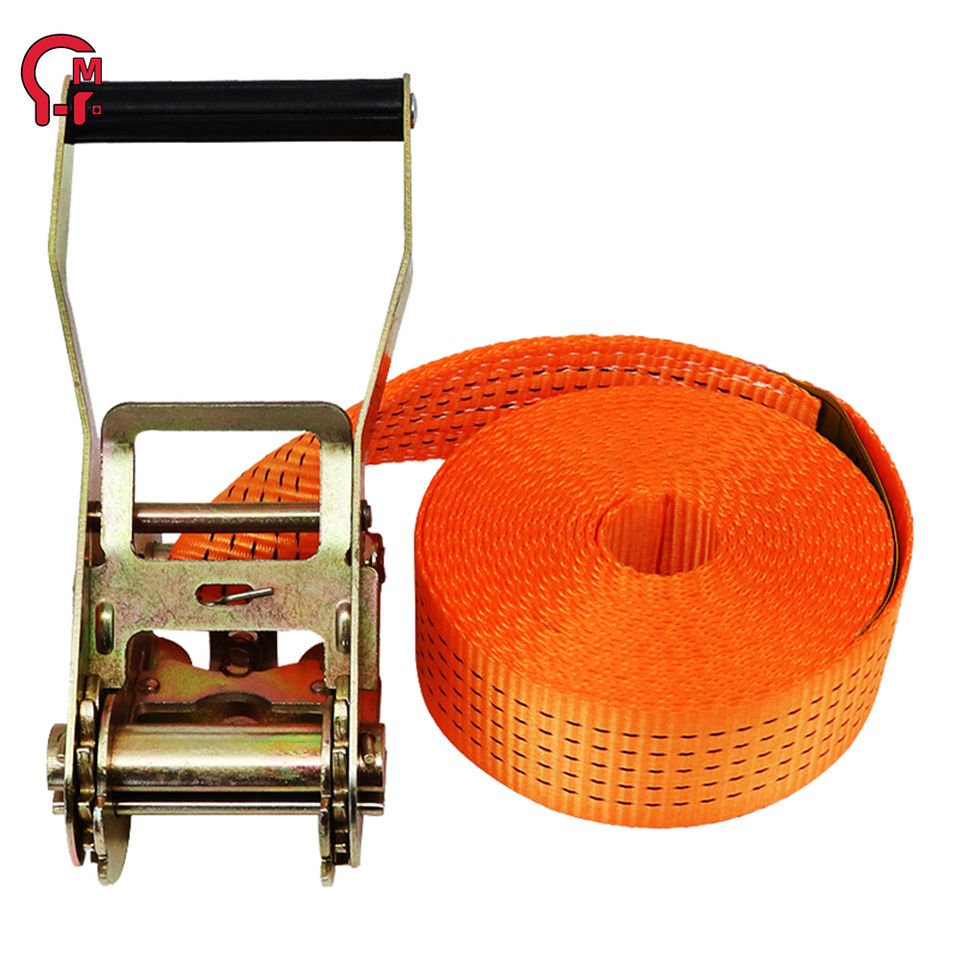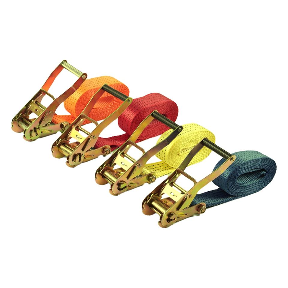 HLM Stock de fábrica Impresión de logotipo personalizado 2 pulgadas 5 toneladas Correa de amarre de trinquete Cinturón de amarre de poliéster de carga Eslingas Premium