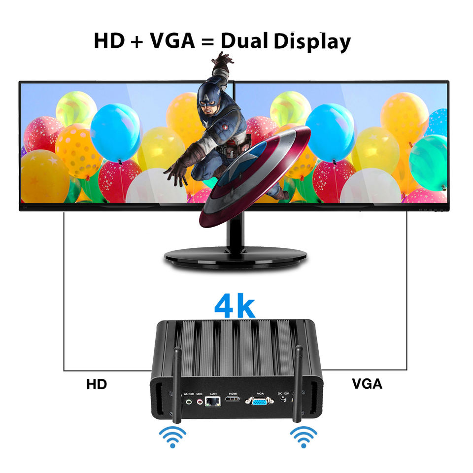 HLY Mini PC Win 10 Intel Core i7 5500U computadora de escritorio sin ventilador con VGA HD WIFI 8G Ram 256G SSD HTPC TV Box USB3.0 WIFI miniPC