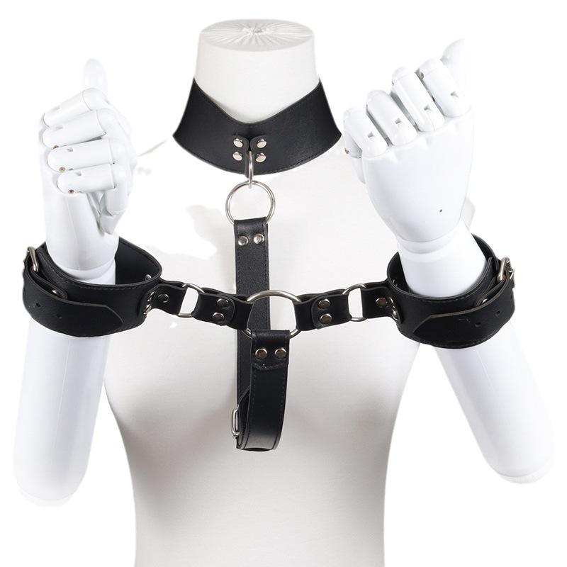 Collar de Choque para Esclavos HM, Collar de Cuero con Esposas, Esposas de Bondage SM, Máquina de Succión para Hombres