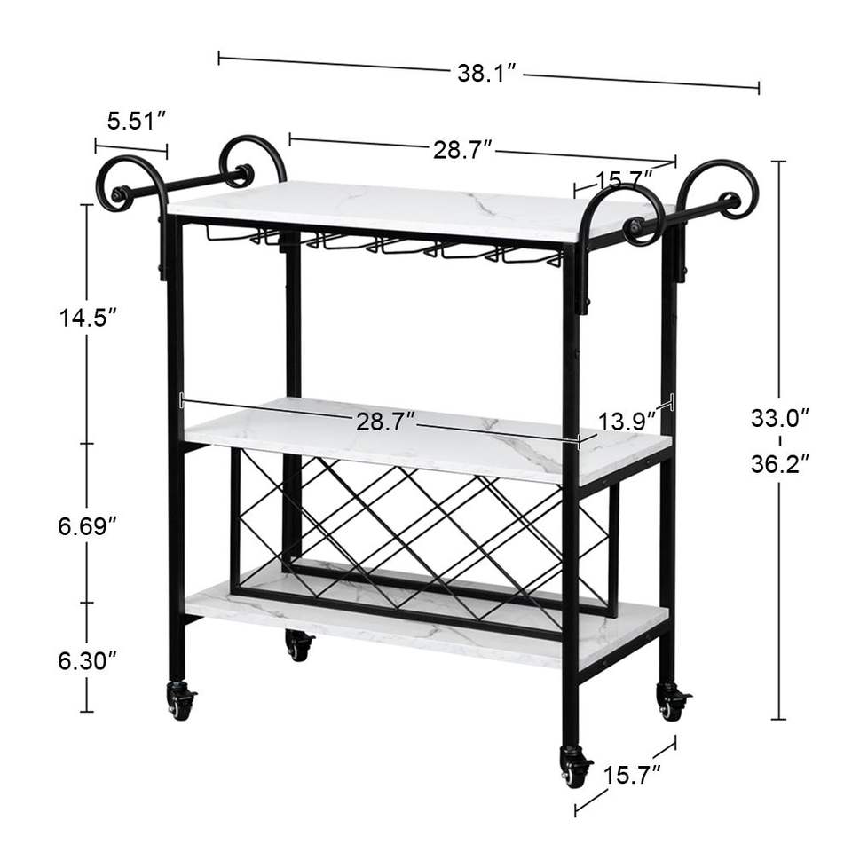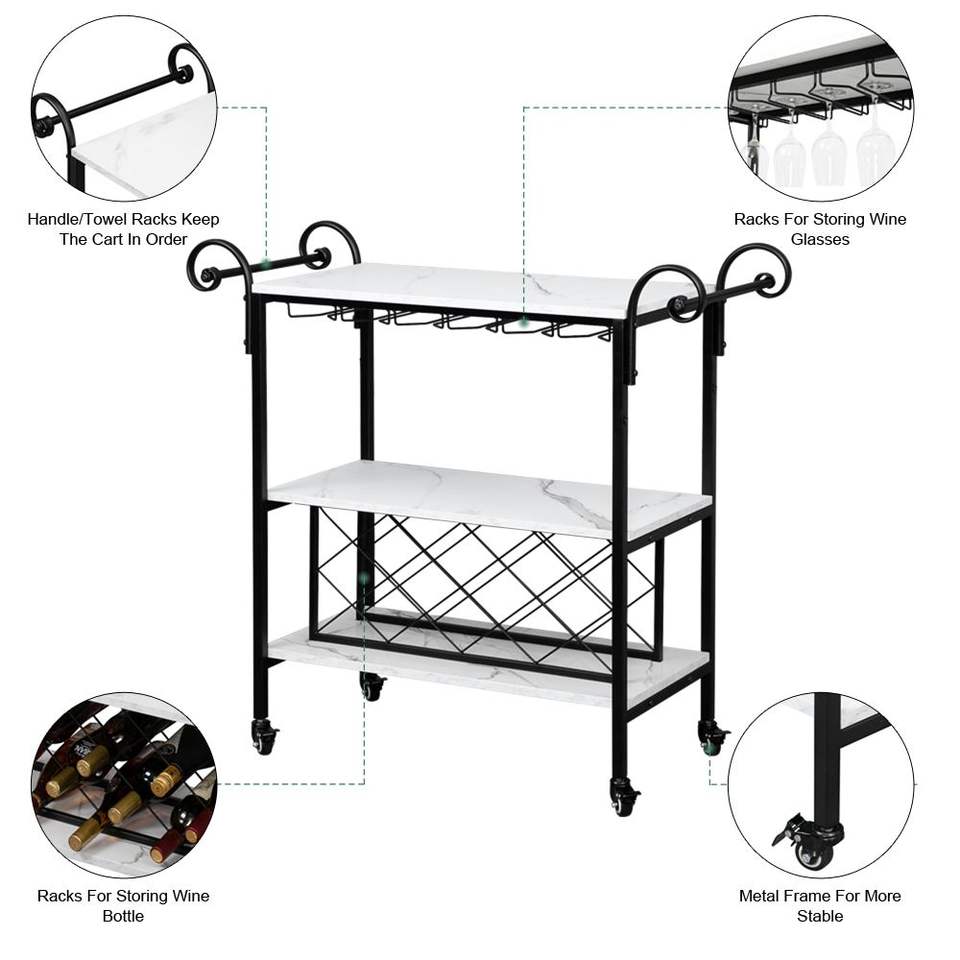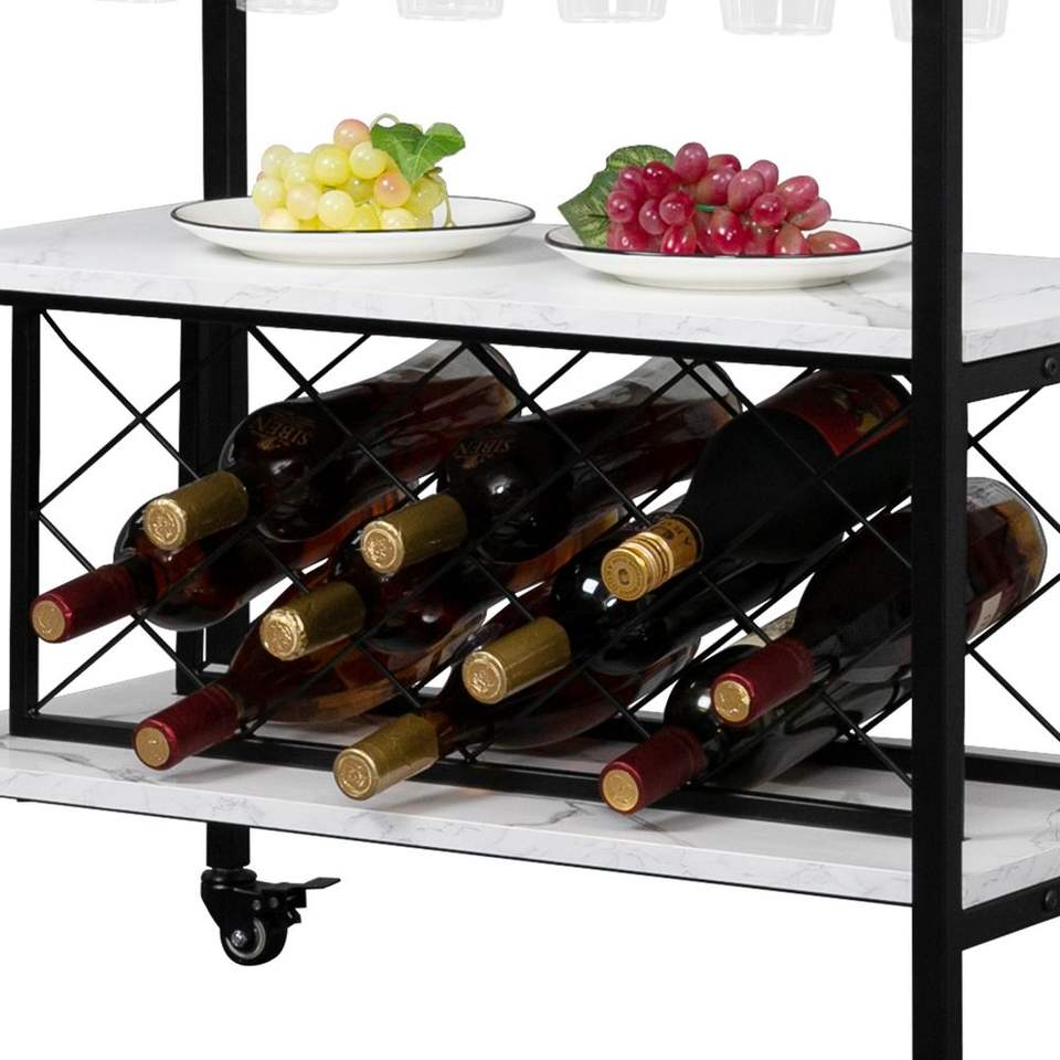 HODELY Estante Móvil de Madera y Hierro para Vino, de Dos Niveles, con Doble Reposabrazos, Diseño Diamante, Tablero de Densidad de 1.5mm, Imitación Mármol, para Transportar Vino