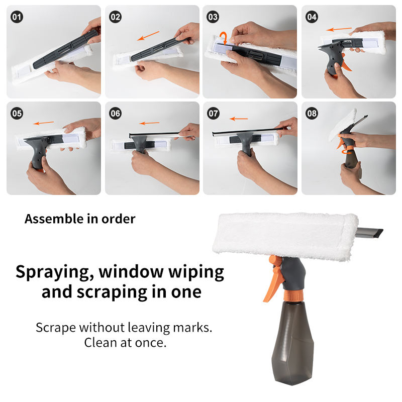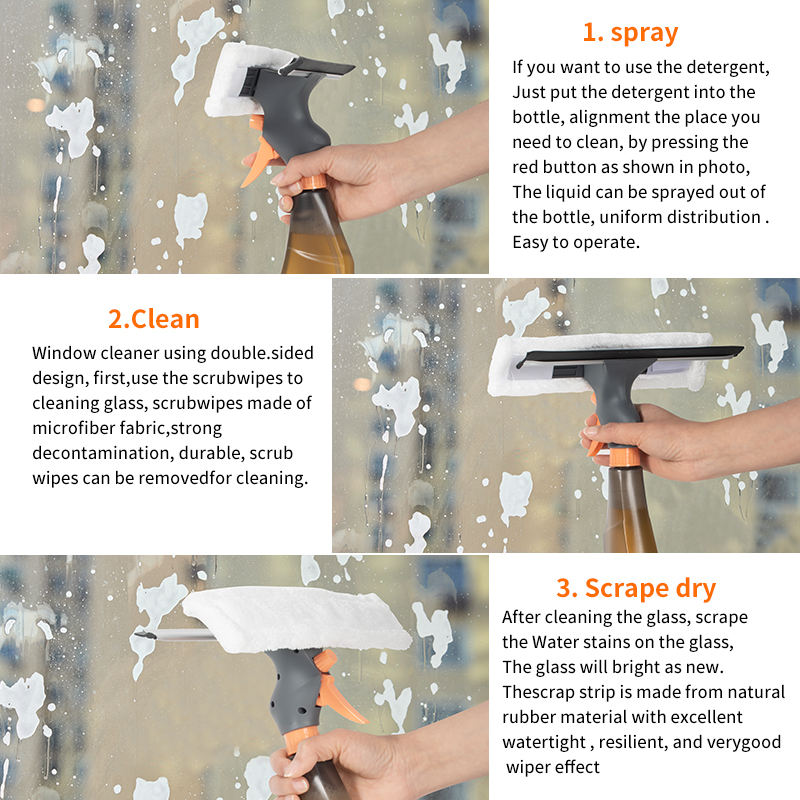 El Kit de limpieza de ventanas de plástico portátil compacto 3 en 1 de HOLAMOPA incluye una almohadilla lavable con escurridor en aerosol para vidrio de ventana y coche