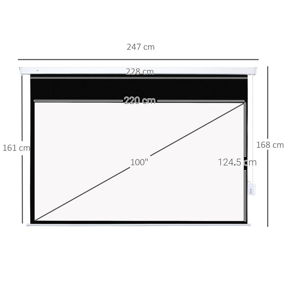 HOMCOM Pantalla de Proyección de PVC y Metal Blanco de 100 Pulgadas con Control Remoto 247x7,5x168 cm