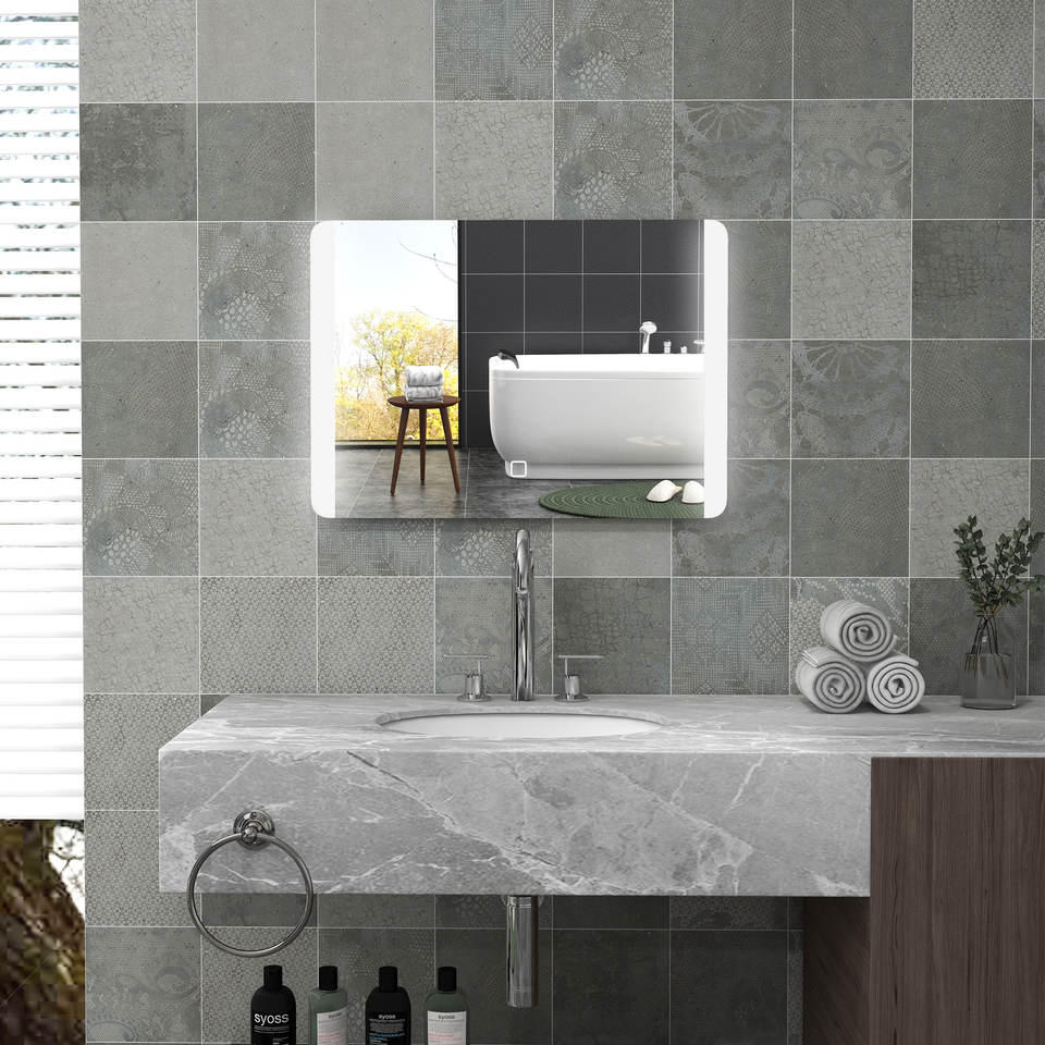 HOMCOM-Espejo de baño con 3 luces LED de temperatura, Interruptor táctil y antivaho, 70x50cm
