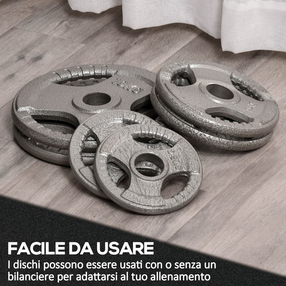 HOMCOM Juego de 6 Discos de Pesas para Barra y Mancuernas de 2.5-35 kg, Discos de Gimnasio de Acero con Orificio de 50 cm, Ideales para Barras Olímpicas, Si