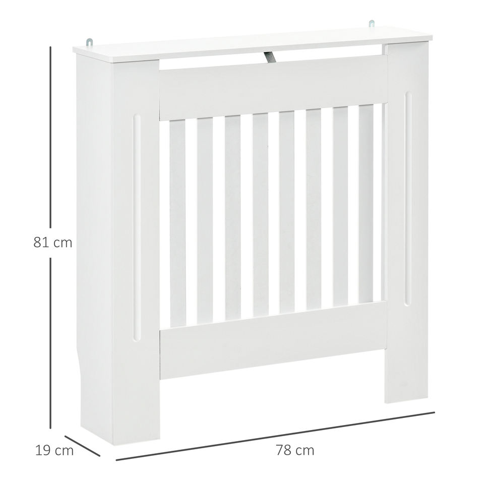 HOMCOM Cubierta de radiador de madera blanca para radiadores y calentadores, con listones verticales y superficie de soporte, 78x19x81cm