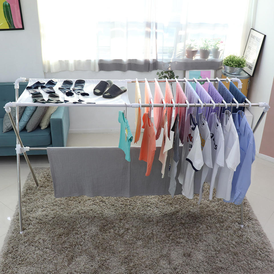 [HOME FRIEND] Tendedero de Interior en Forma de X Grande (10 Perchas + Malla) Resistente para la Organización Diaria de la Ropa