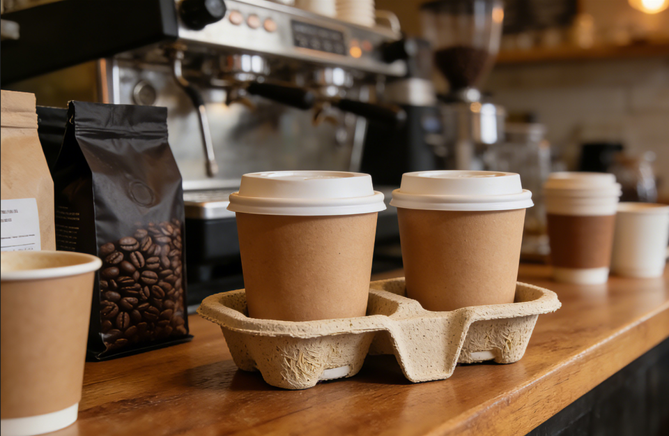 Portavasos Desechables Ecológicos de Pulpa de Madera y Bagazo, Personalizados de Fábrica en Tailandia, para 2 o 4 Vasos