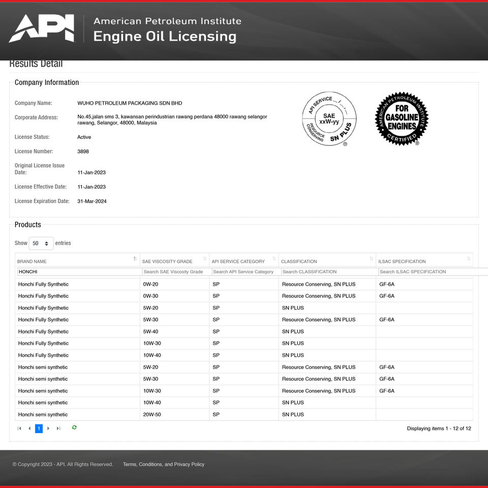 Certificado:API SP ILSAC GF-6A