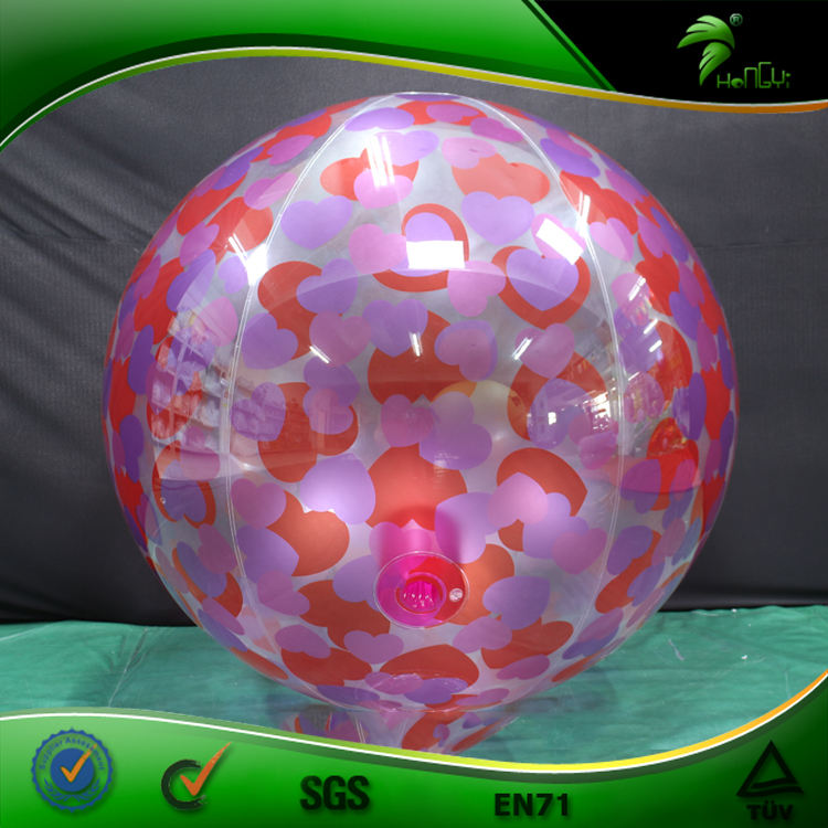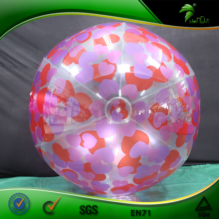 Pelota de Playa Inflable Transparente de PVC Personalizada HONGYI, Globo Transparente con Impresión de Corazón Rosa y Esfera