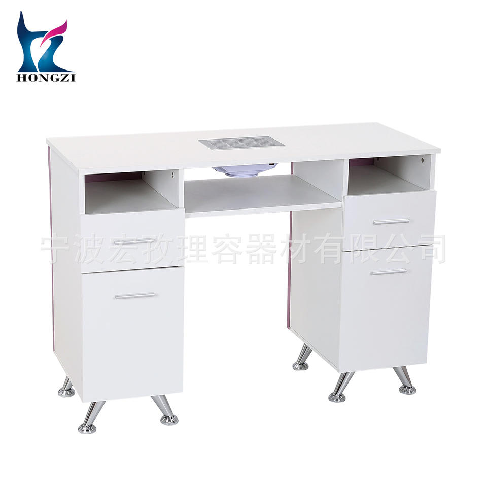 Mesa de manicura HONGZI con aspiradora incorporada, soporte suave para manos, almacenamiento de doble capa, estación de trabajo para manicura, blanco y rosa