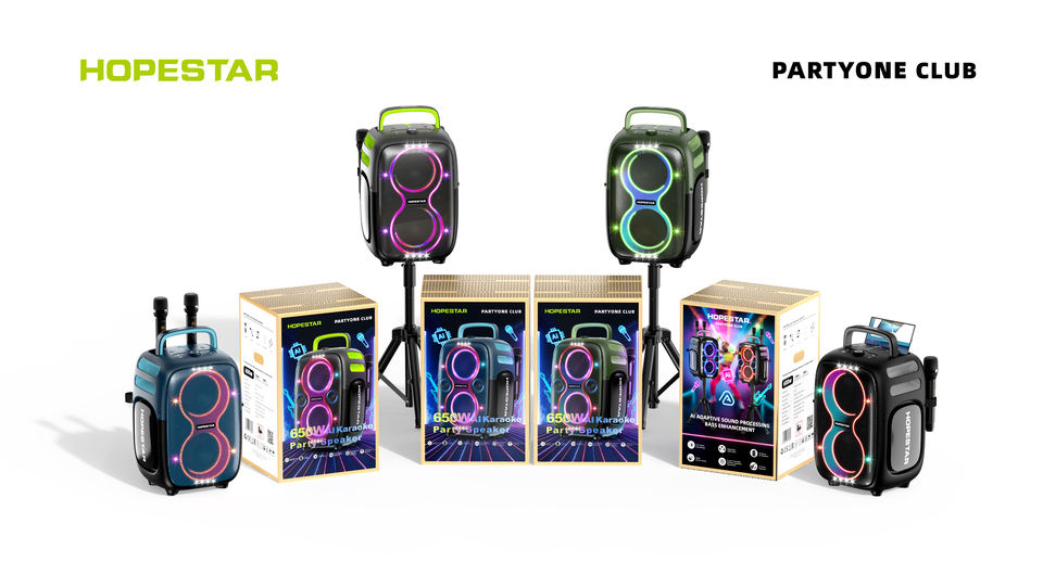 Altavoz Inalámbrico HOPESTAR Partyone Club de 650W para Exteriores, Alta Potencia, Resistente al Agua IPX-6, con 2 Micrófonos, Colorido