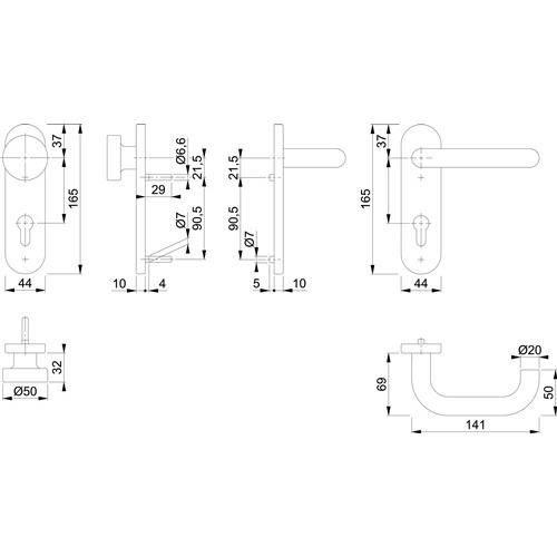 Juego de Protección Contra Incendios HOPPE Paris FS-E58/353KH/138 de Acero Inoxidable F69 D/K para Puertas de 40-65 mm de Espesor, Accesorios para Chimeneas PZ