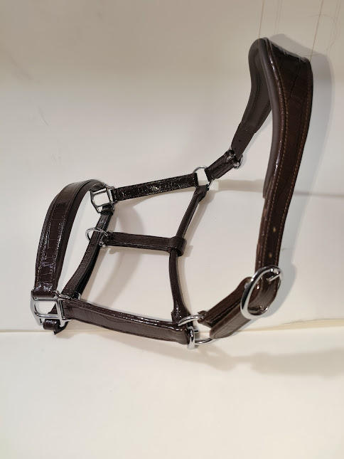Cuello de cabeza ajustable de caballo de cuero estilo sillín inglés con costuras elegantes