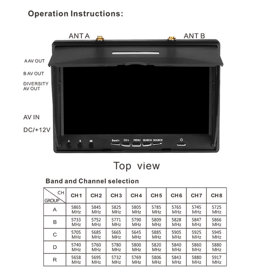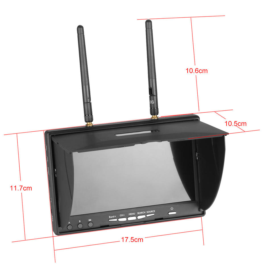 Monitor FPV HOSHI LT5802D de 7 Pulgadas, 5.8G, 40CH, Receptor de Doble Diversidad, Búsqueda Automática de Señal, Batería de 2000mAh, Pantalla LCD TFT para Dron