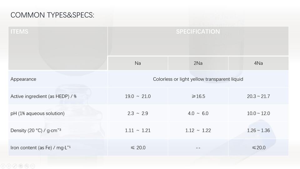 Ingrediente activo (como HEDP) / %:19.0 ~ 21.0