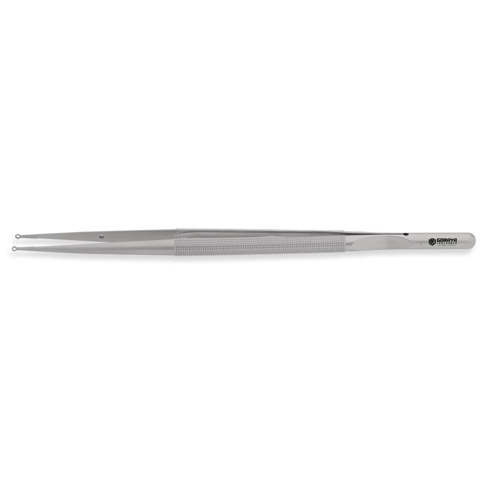 VENTA CALIENTE GORAYA GERMAN Ring Tip Forceps-Right 2,5mm Rings TC Coated Platform, Round Handle WCounter Balance