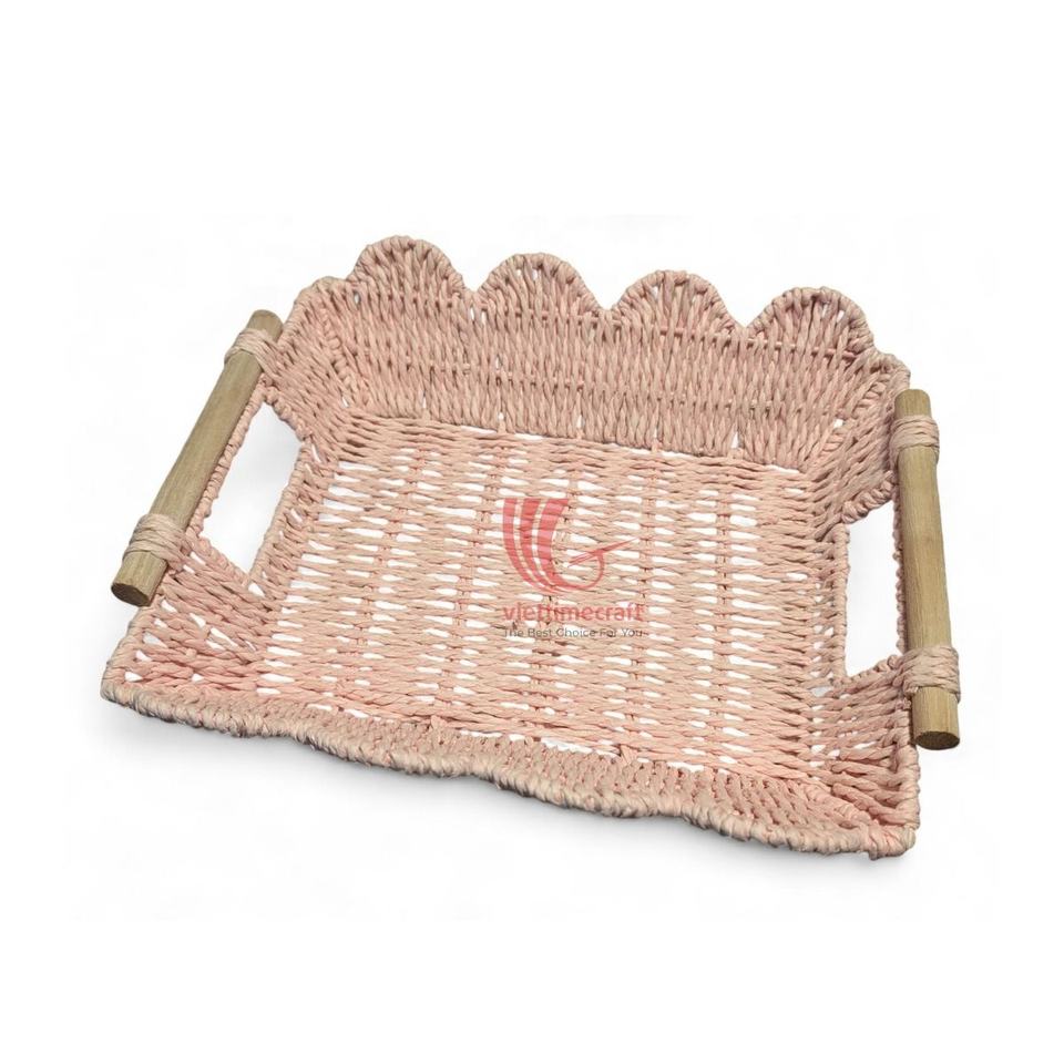 ¡Gran venta! Bandeja de cuerda de papel de paja ecológica hecha a mano, cesta de servicio multiusos reciclable al por mayor