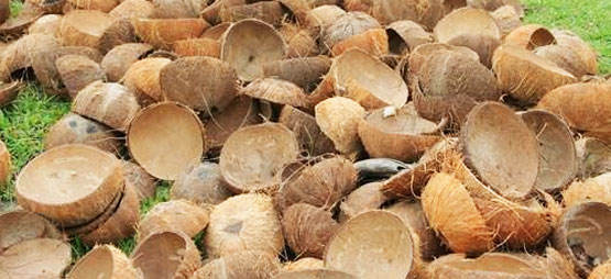 Cáscaras de coco trituradas; Cáscaras de coco medio cortadasTamaño