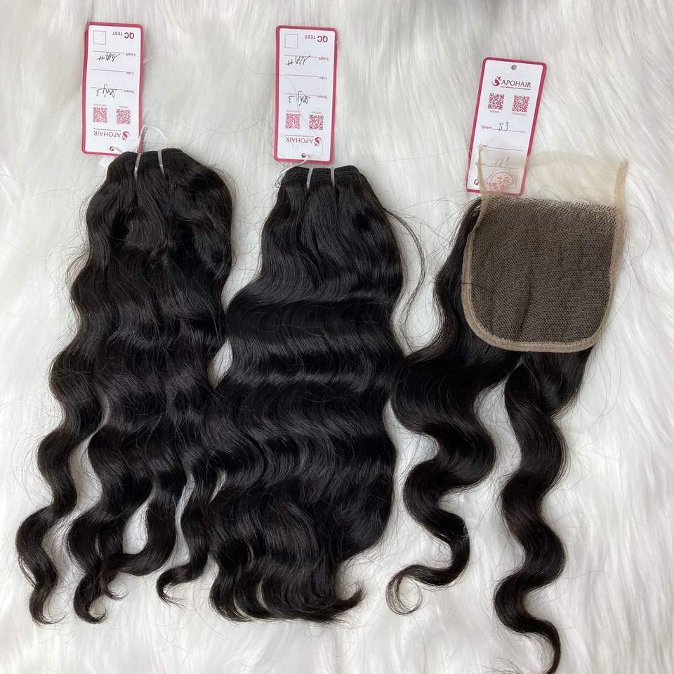 Extensiones de pelo ondulado brasileño con cierre, pelo ondulado virgen con cutícula alineada, venta al por mayor