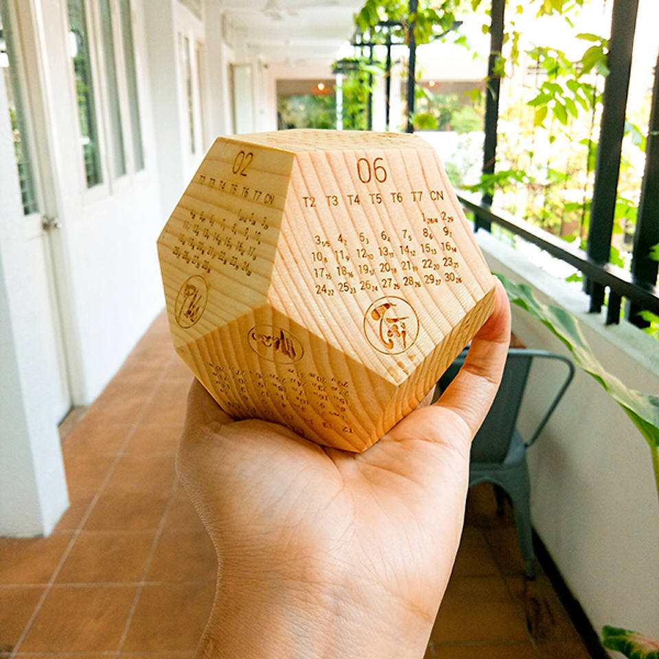 CALENDARIO HEXAGONAL DE MADERA DE MODA CON 12 MESES COMPLETOS PARA LA OFICINA