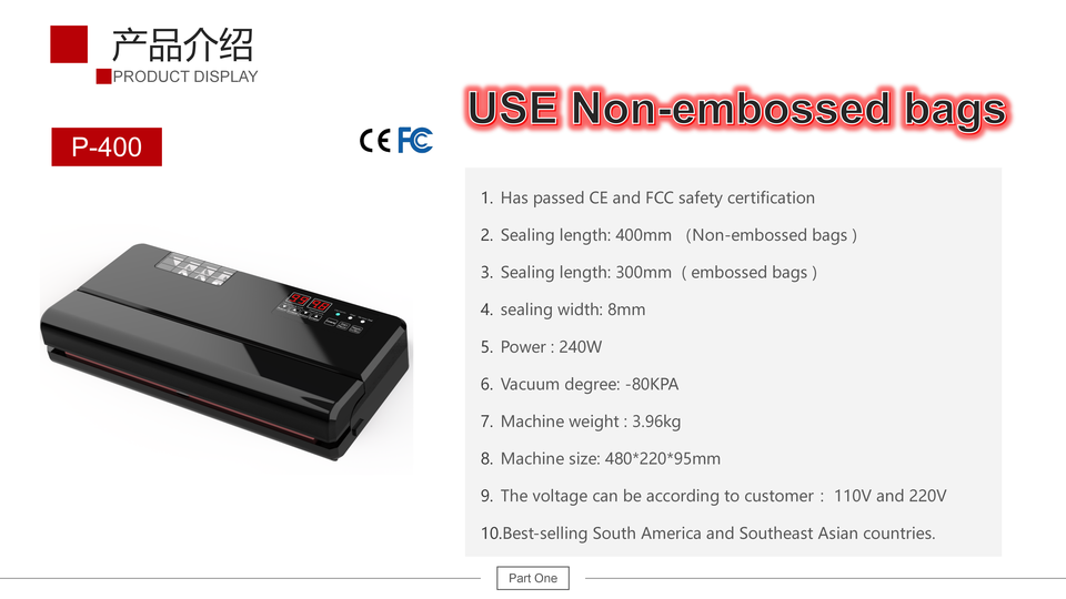 Máquina Selladora al Vacío Eléctrica Automática de Mano HOVER P400 para Uso Doméstico y Comercial, Diseño Compacto, Fácil de Limpiar