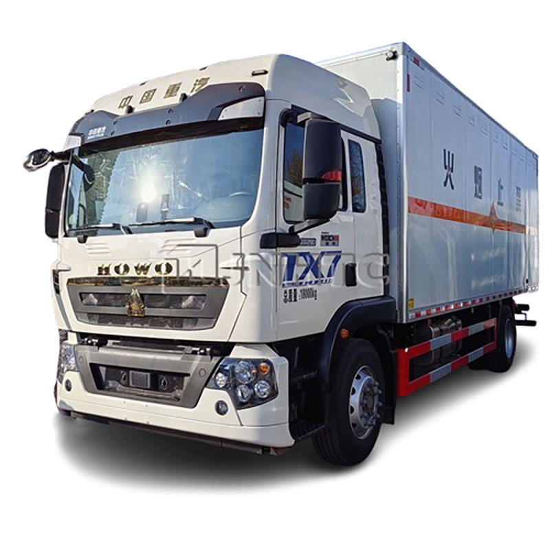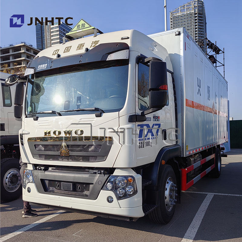 HOWO TX Nuevo camión de diésel pesado para transporte de mercancías peligrosas explosivas Entrega 4x2 Rueda motriz Van Tipo de tanque de carga a la venta