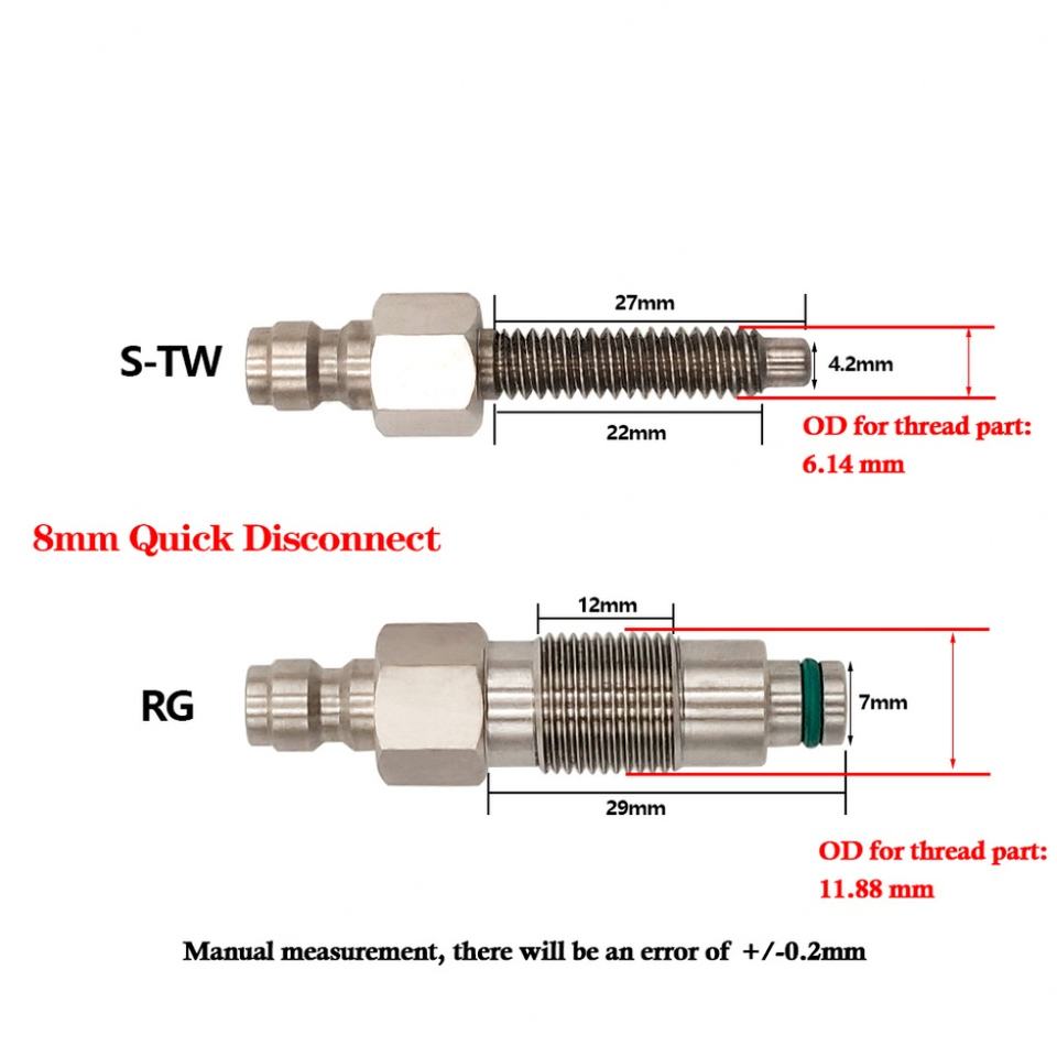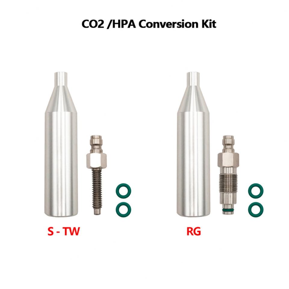 Kit de Conversión de CO2 HPA, Aleación de Aluminio Plateada, Roscas Neumáticas S-TW RG, Acoplador Rápido Macho de 8 mm, Reemplazo de Cartucho de Cilindro de 12 g