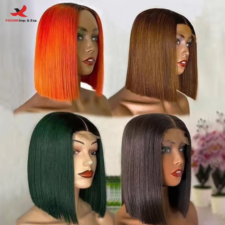 Peluca de Cabello Humano Remy con Frente de Encaje Peruano, Estilo Bob Corto, Transparente, sin Pegamento, 4x4, Descuento por Compra Mixta