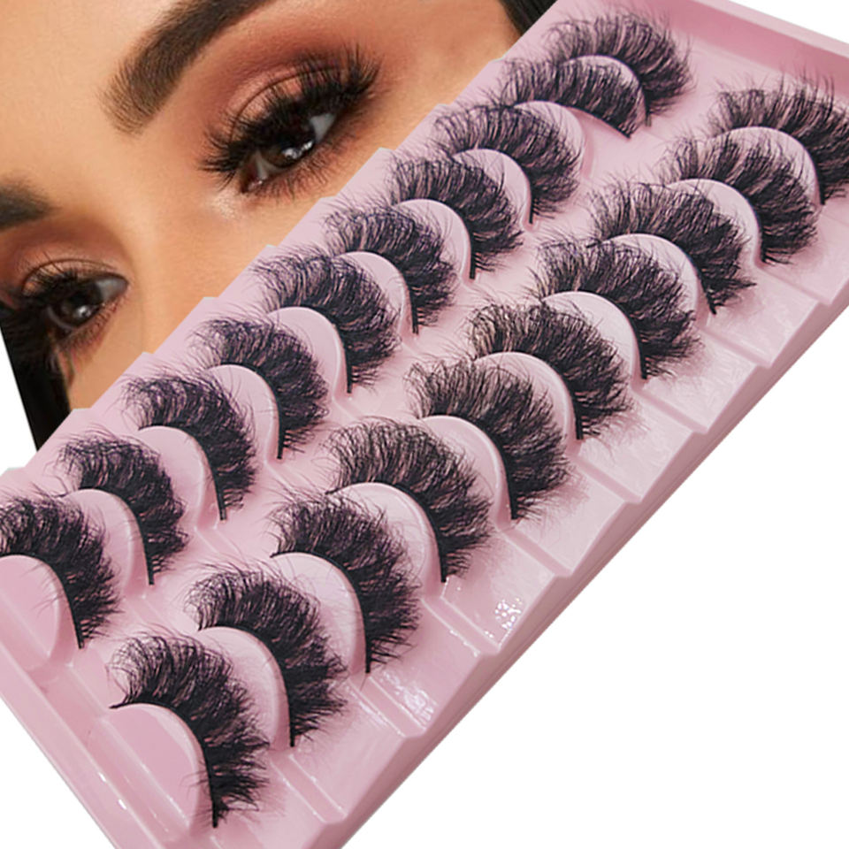 Pestañas Postizas de Mink Sintético, 10 Pares, Descuento por Volumen, Pestañas de Tira Completa para Maquillaje