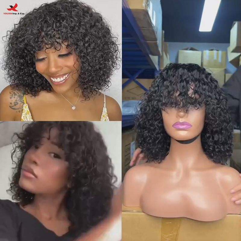 Peluca de Cabello Rizado Borgoña con Flequillo y Encaje Ondulado, Estilo Bob, de Alta Calidad, Descuento por Compra al por Mayor