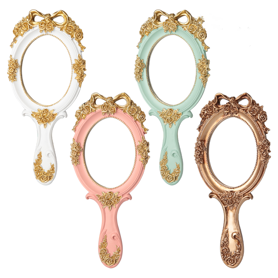 Espejo de mano estilo victoriano, espejo de maquillaje retro portátil.