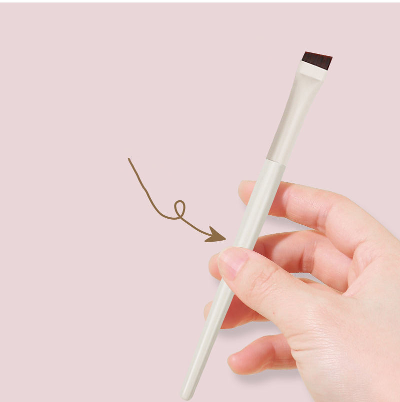 Brocha de Maquillaje Vegana para Delineador de Ojos y Cejas, Ultrafina, Inclinada, Plana, de Alta Calidad, con Pelo Sintético, Color Beige